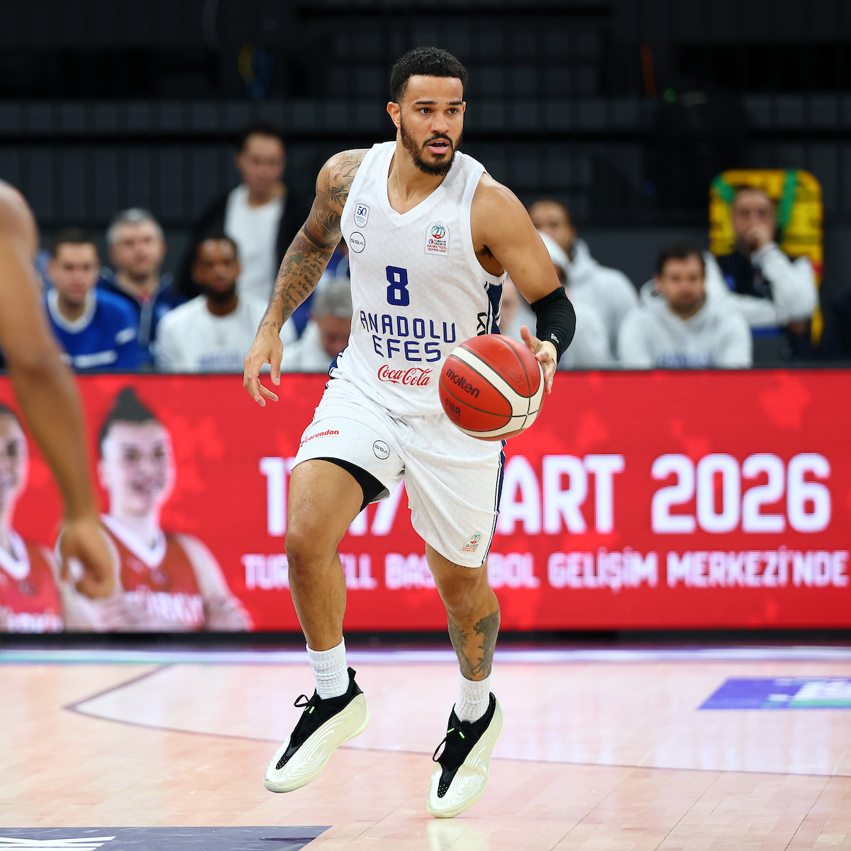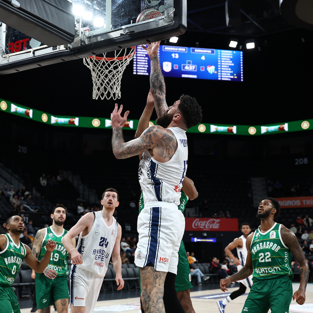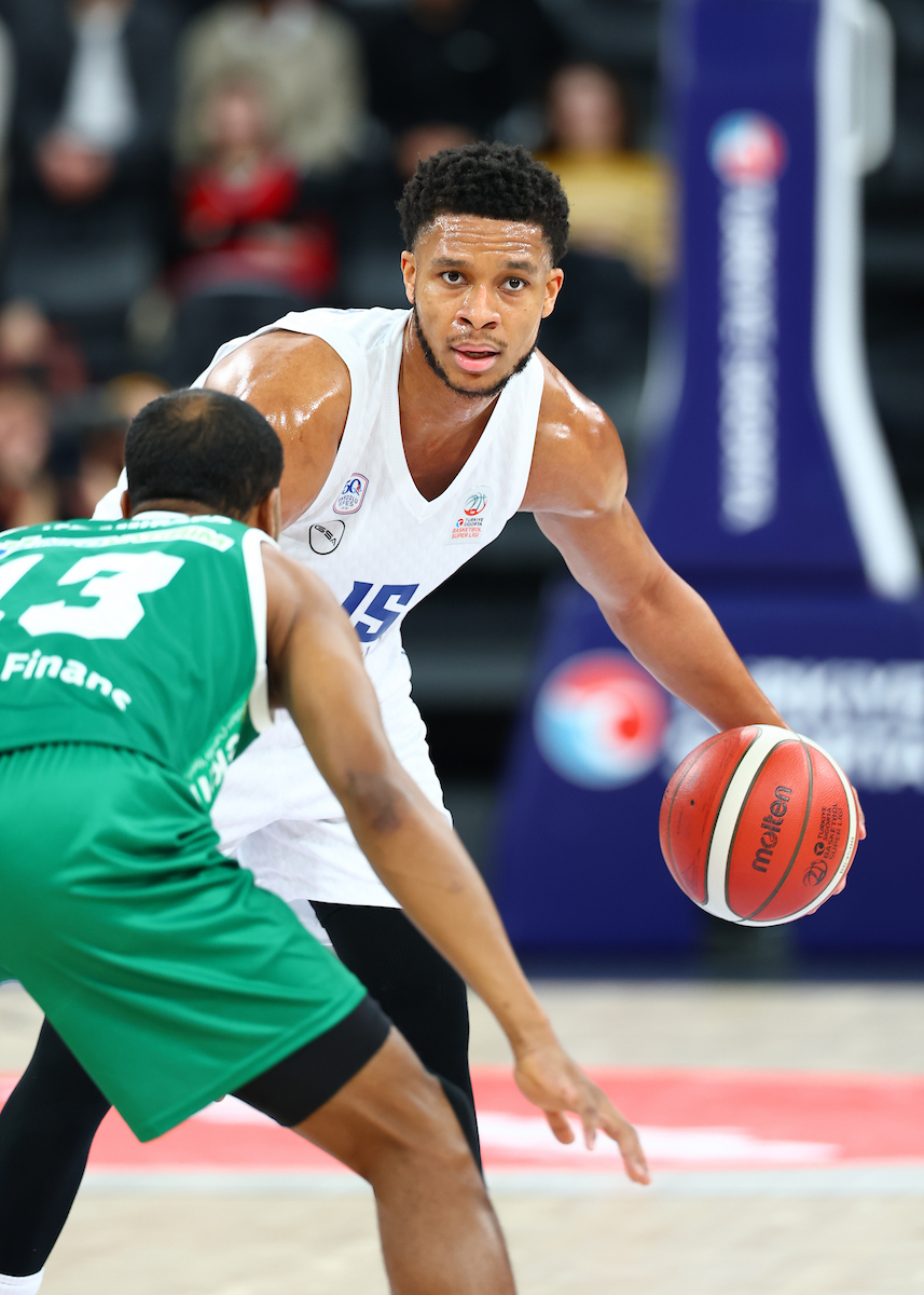Our first points of the second half came from Poirier at the free-throw line and we entered the 21st minute leading 47-30. Ercan and Cordinier also added to the score in this part and by the 24th minute the lead was 55-36. After a three-pointer from Weiler-Babb and two spectacular dunks by Smits, we made it 62-39 in the 25th minute. With points from Şehmus and Dozier, the score reached 70-45 by the 28th minute and in the final two minutes Lee knocked down four free throws, sending us into the last quarter ahead 74-53. We opened the final period with a three-pointer from Şehmus, making it 77-60 in the 32nd minute. Following a three-pointer from David and two free throws each from Lee and Şehmus, the score became 84-64 in the 35th minute. After a highlight dunk by Jones, Cordinier scored a three-pointer to make it 89-72 in the 38th minute. We maintained our advantage until the final buzzer and with points from Şehmus and Lee, we won the game 95-80.